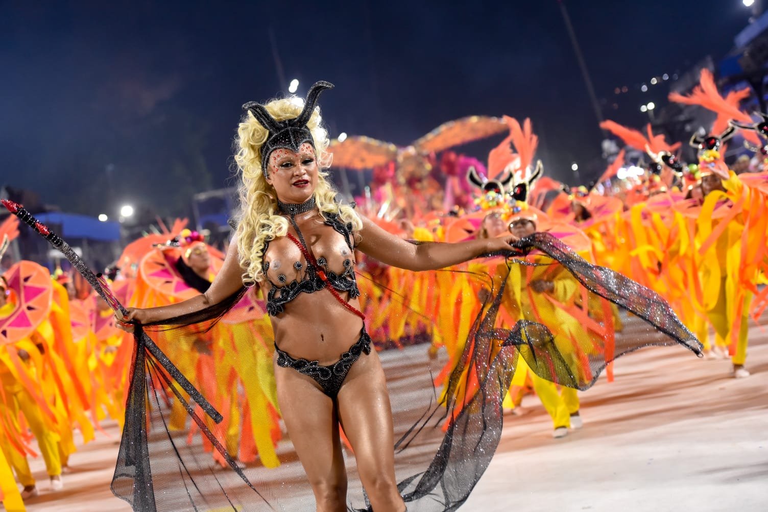 Danny Foxx abre desfiles da Lins Imperial representando a “Rainha Infernal”