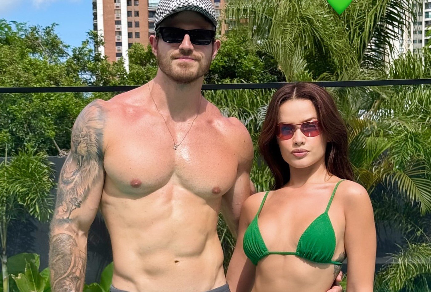De sunga Kaique Cerveny rouba a cena em dia de piscina com a noiva de Juliette