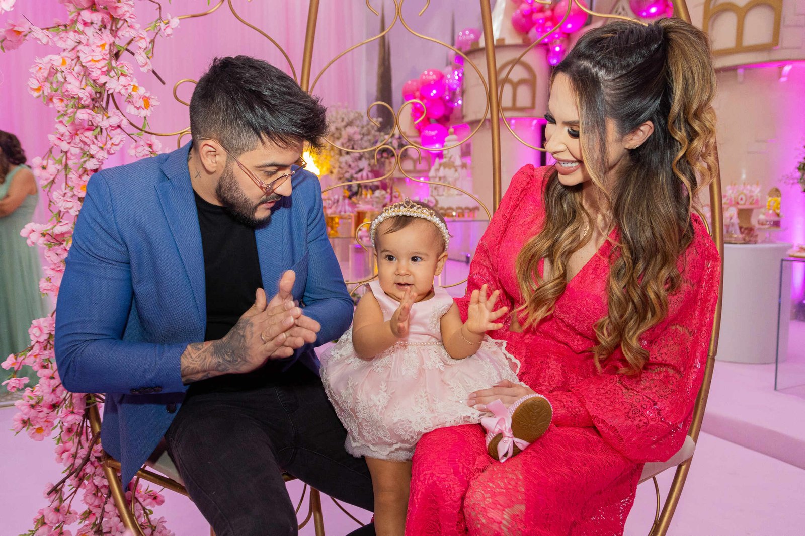 A celebração teve ainda a entrada de Aurora como daminha. A pequena levou as alianças do casal em uma BMW X4 de brinquedo, motorizada. Todos presentes se emocionaram.